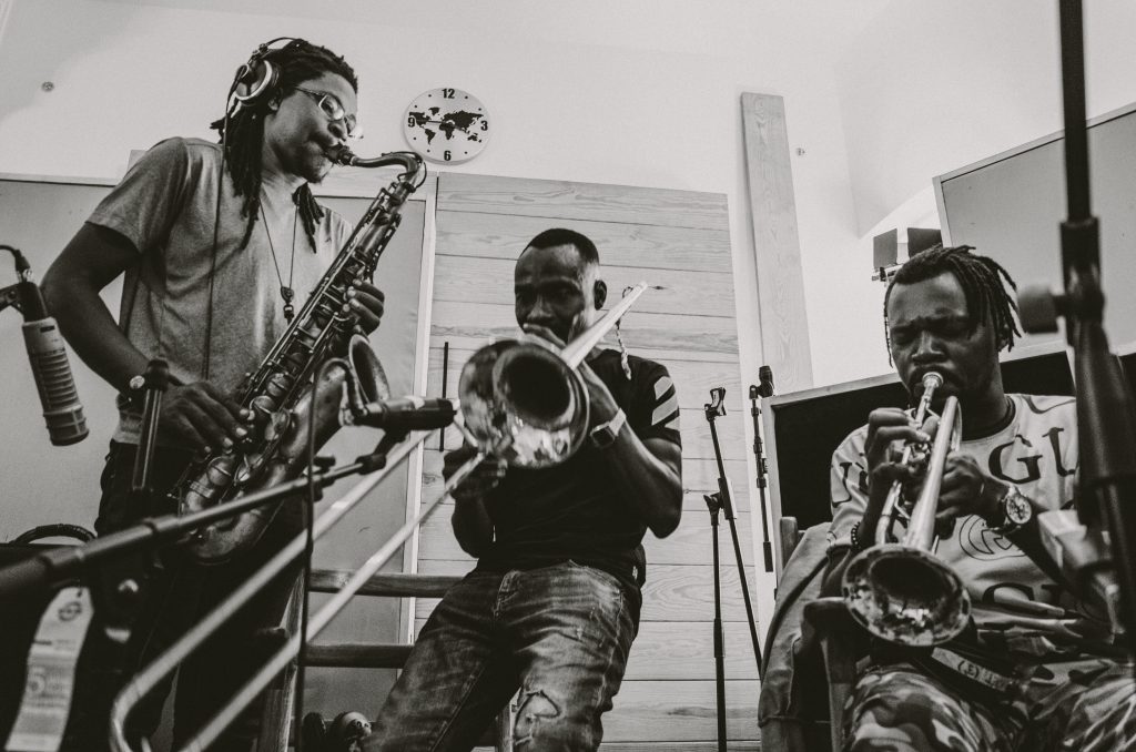 Das waren dann der Gitarrist René Sowatche von Orchestra Baobab, der Bassist Christian Obam, eine Bläsersektion mit Musikern aus Benin, Kamerun und Kongo und zwei Stimmen mit Assane Mboup und Alpha Dieng. Die europäische Delegation war ebenfalls sehr vielfältig, alles langjährige Begleiter von Guts: Mr Gib, David Walters, Florian Pellissier, Cyril Atef, Pat Kalla, Djeudjoah &Lieutenant Nicholson, Al Quetz, El Gato Negro, Arnold Moueza…
